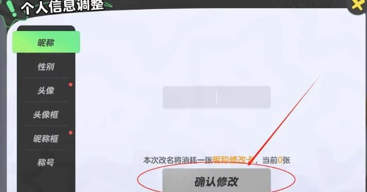 3、最后,在此页面即可修改元梦之星的昵称了,需要消耗一张昵称修改卡,可以从商城购买获得