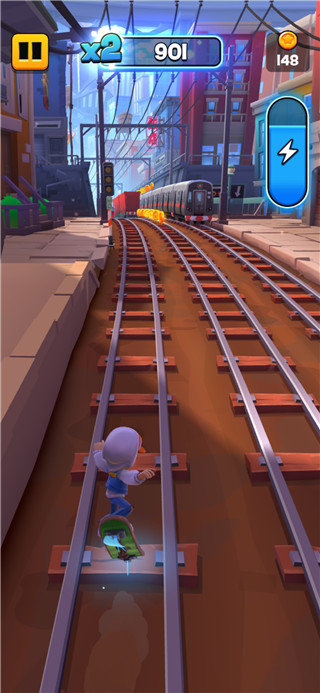 3、在游戏中除了金币道具外,就是有着能量电池,收集电池即可激活滑板。