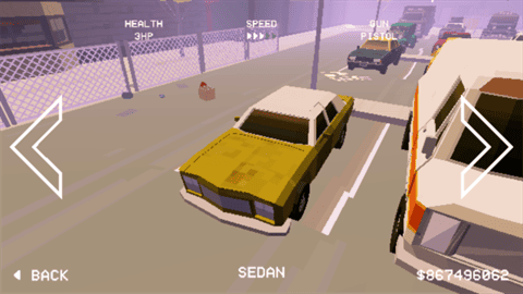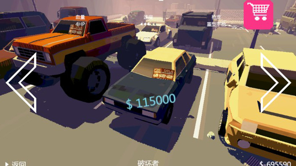 游戏中共分为两种车型:一种为速度快的血皮车,另一种则为速度慢的肉搏车。因此这款游戏也就产生了两种激情玩法:选择用速度甩开警察玩速度激情,或用肉搏车稳扎稳打的摇摆刷钱。一切的操作都在于你的选择和应对,以及你的喜好。