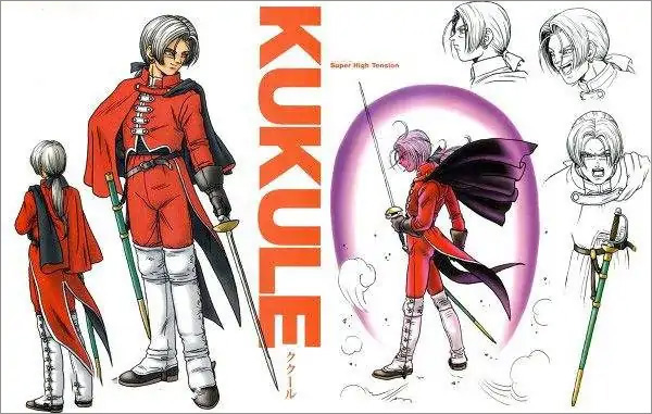 一个忠诚的皇家卫士。因为一次偶然事变被迫离开了他的王国。善于用剑、枪和回旋镖,并且能够习得勇者专用的技能。