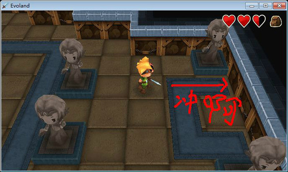 森林怎么进去呢?你需要在小镇通过对话NPC从女主的叔叔开始一步步获得炸弹被井边跑的那个熊孩子拿来玩了,旁边那个光头面对面的可以玩牌,拿到炸弹后进入神圣森林,然后点击右上角背包,切换武器至炸弹,然后摆在挡路的石头前,然后就可以进入了。为了后面解密的趣味性,解密我就不说了,挺简单的,需要注意的是,想要点燃小树,必须要打击水晶,切换至像素模式,可能会没反应,多打几下。而把雕像挪开后,拿弓箭,然后打BOSS,一来放炸弹,运气好可以炸死两个骷髅兵。友情提示:能不用弓箭就不用弓箭,它只能从四个方向射出,一般打不中怪