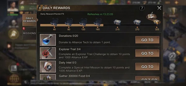 联盟任务:积极参与联盟任务,与联盟成员共同完成任务目标,获取联盟贡献和丰厚的奖励。任务内容可能包括击败一定数量的僵尸、采集特定资源等。