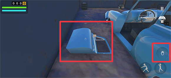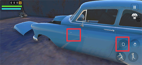 1、游戏开始时,玩家需要将所有汽车零件装备到车上。通过点击屏幕上的手掌按钮,你可以拾取这些零件。