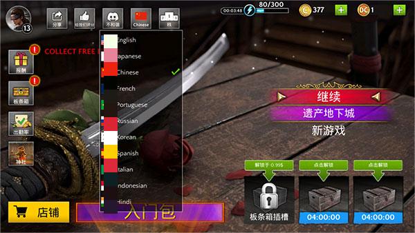 2、第二种方法是在进入游戏之后,点击主界面正上方的国旗,再选择Chinese即可成功设置中文。