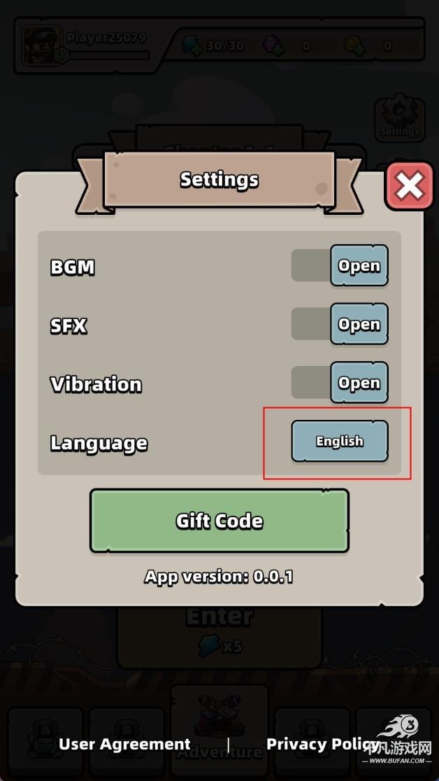 1.启动游戏后,寻觅并点击界面上的“设置”图标Settings