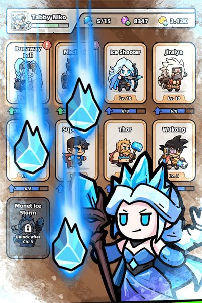 5.解锁角色卡牌宝库,升级并定制专属技能,让每位角色在战场上熠熠生辉,助你一臂之力