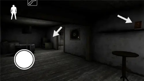 下楼梯后左边的地板上有一根黑线,从上面走过铃铛会响,需要注意。楼梯旁的柜子里可以躲,柜子对面有一个门,里面可能刷东西。柜子旁边有一个门通向地下室由于画面较暗,所以不大容易发现,同时奶奶的出生地就是地下室,所以萌新不要一开始就往地下室跑哦。最后说明一下,以后就不提示了。墙上的画,照片,小物件等都是可以被碰掉的,所以走路时尽量不要贴墙。