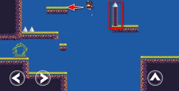 5、然后便可过去,踩住按键上方尖锐物体便会消失,然后便可继续游戏;