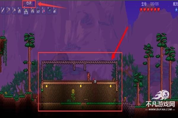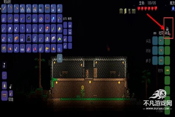 1、新手进入到游戏中,我们只拥有三个工具,斧子.镐子和剑,在地面上白天我们会遇到史莱姆等敌人,晚上会有僵尸.恶魔之眼等敌人。