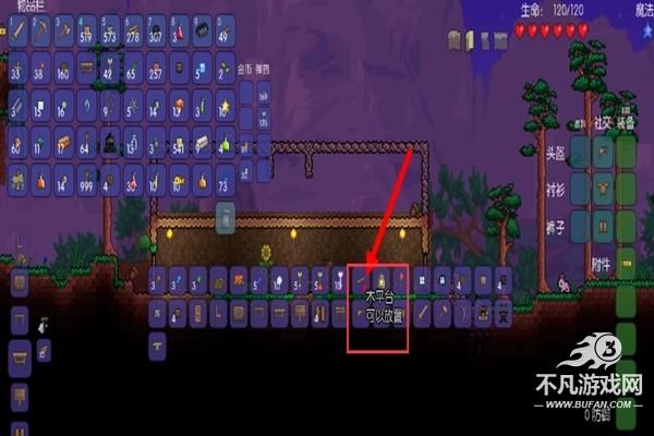 8、然后在工作台再找到木平台,在1层和2层之间的中间放上。