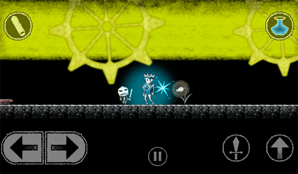 1、用小骷髅的灵活身形通过狭小通道或触发某些机关,变成王子后抱起公主通过特定区域。