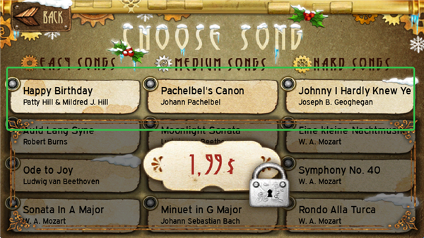 4、选择演奏难易程度,绿色是简单,黄色是中等,红色是困难。