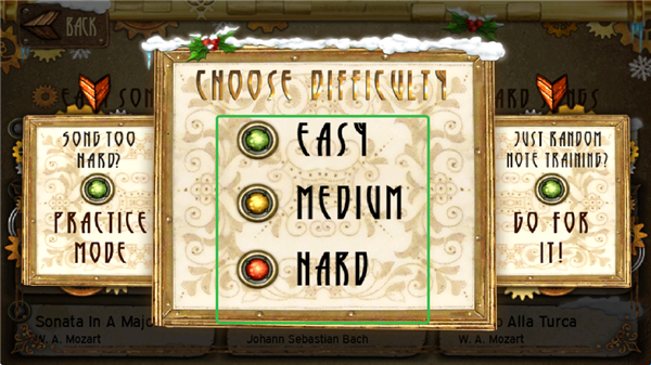对于任何技能组合的音乐学爱好者来说,不是一个,而是三个不同的难度级别。如果您是初学者,请先确定简单和中等级别,当您是专业人士时,再进入困难模式。练习模式是让您开始音乐之旅并享受基本曲调。