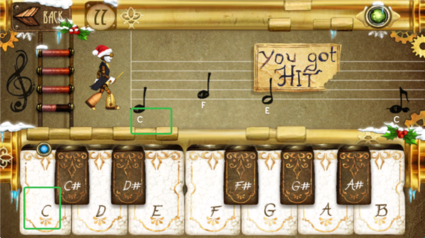 5、开始演奏,玩家需要根据乐谱上的音符来敲击钢琴上相应的琴键。
