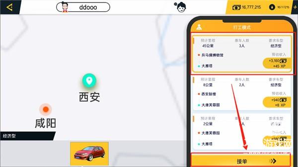 6、到达指定位置接乘客,这个地方还可以加速哦。