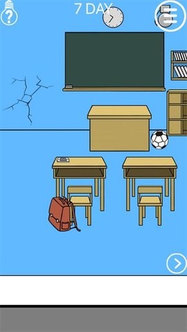 第1关很简单,点击课本获得钥匙,然后将钥匙拖到门上即可将其打开。教室门打开后,再点击一下门即可顺利逃出教室通关。