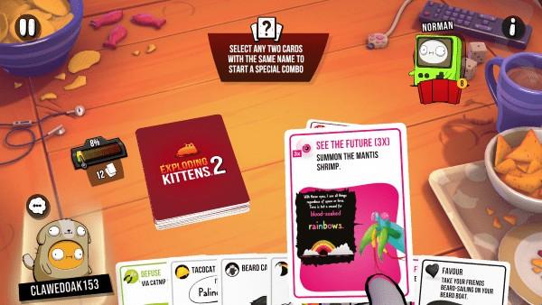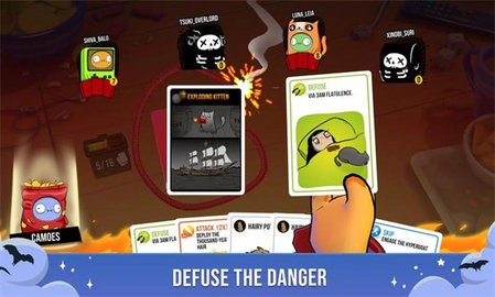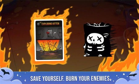爆炸猫2是抽卡小游戏,每个卡牌的功能不同,玩家必须躲避带有爆炸的卡牌,有发动攻击、防御型、打乱顺序等各种功能的卡牌,还可以使用一些道具卡牌干扰别的玩家,游戏氛围紧张又有趣,还可以四个人一起玩哦~