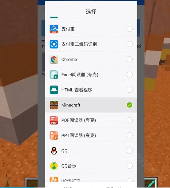 3,点击相应文件,在弹出菜单选中我的世界,就可以直接导入