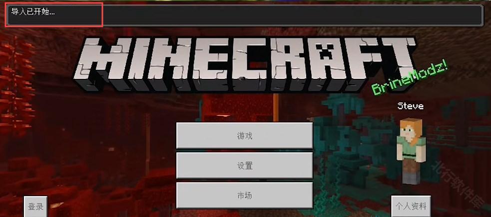 4,打开我的世界,可以看到上方显示导入已开始,等导入成功即可开始游玩