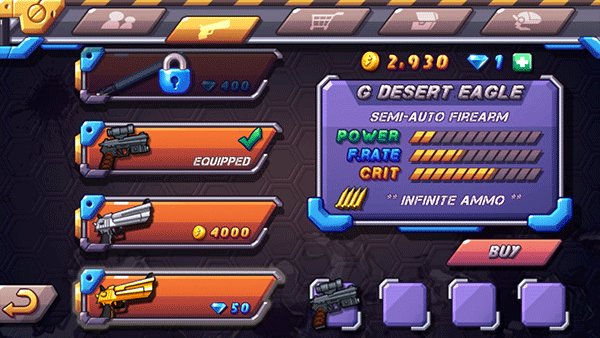 待购买新武器后,正好有个无尽模式,这样可以快速刷些金币,土豪在这个时候建议购买少量金币来升级新买的枪支,这样在前期无尽模式能刷取更多的金币,让游戏进度和爽快感快速增加。