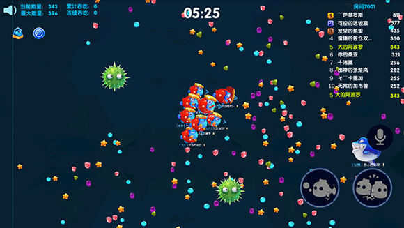 4、吃了海胆就会更快长大,这个方法可以让吃了海胆后快速合成一个大鱼,在鱼变成几个小的时候快速双击屏幕,然后吐球,中间的那个就会迅速变大,