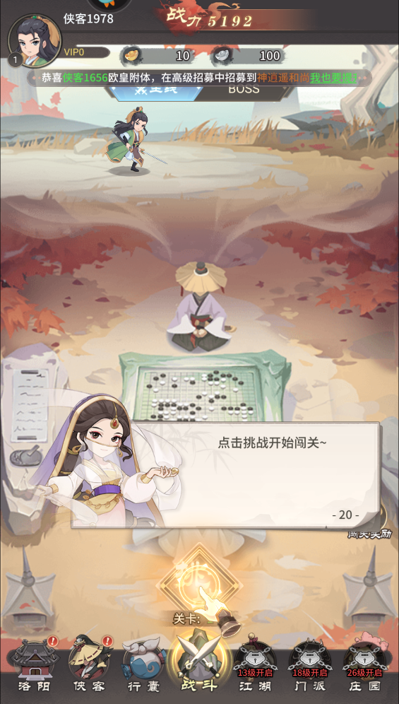 我们为你准备了无限抽卡机会,让你轻松招募到各式传奇侠客――无论是声名显赫的武林盟主,还是隐居深山的神秘高手,都有机会成为你的得力助手,一同闯荡江湖!