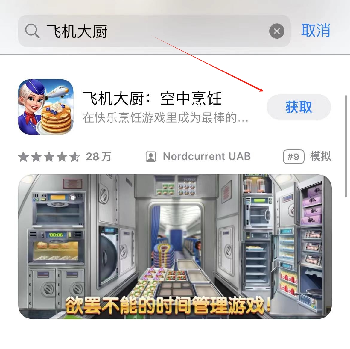 飞机大厨游戏在国内的ios应用商店是可以直接搜索到然后安装到手机玩的,在app store内搜索游戏名并获取即可,见下图: