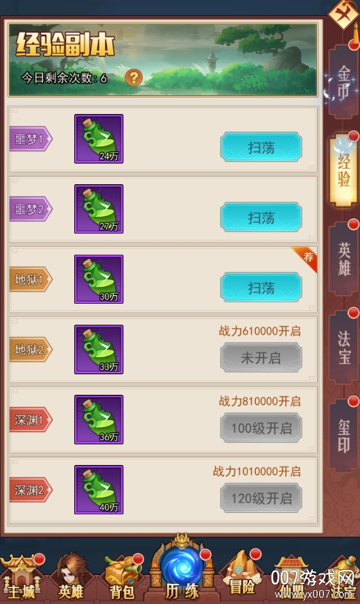 每次通关都能获取大量的经验奖励,通关的越多,离线获得的经验也更多。