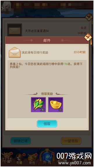 演武场每日会根据排行榜发放结算奖励,排名越高,获得的元宝越多