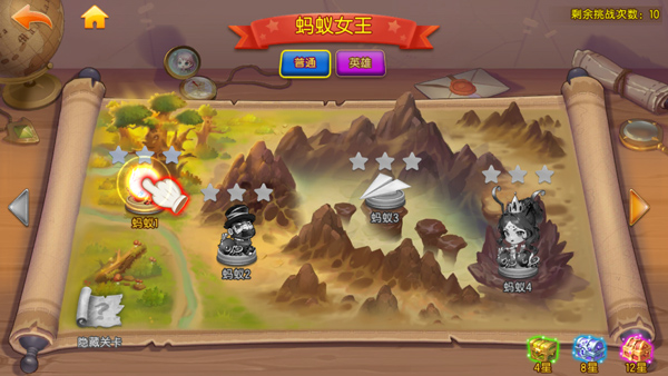 完成星星任务即可获得“星星”,集齐一定数量的“星星”便可以换取金币、钻石等资源。