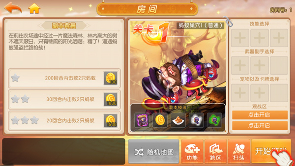 8、接着选择要携带的技能、武器、宠物,点击开始游戏;