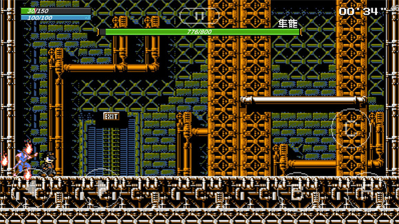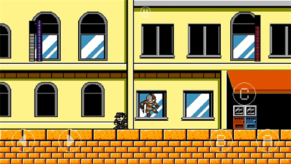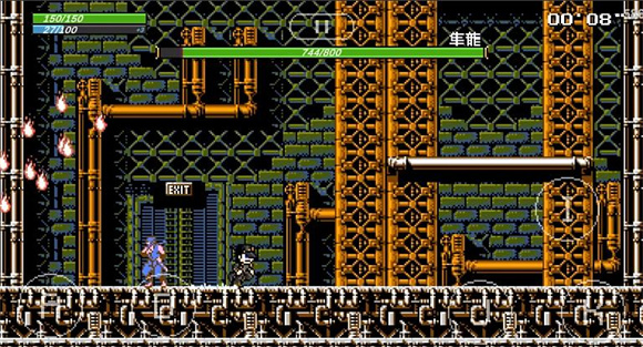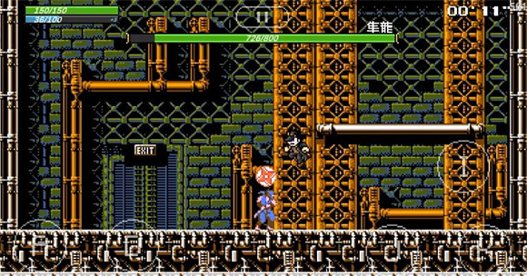 3、发射手里剑,手里剑会朝着玩家以类似z型的轨迹飞行后飞出屏幕,如果boss再次使用手里剑则会消失,每一次转向都会造成一次伤害,第一段需要跳过去,第二段后半部分手里剑会离地一个身位,一直到第三段,所以这段是不需要跳起躲避的。
