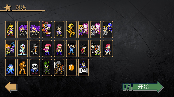 jojo的奇妙冒险x洛克人,是B站UP主孟队自制的一款游戏,目前最新版为3.25,加入了新boss,游戏里有许多jojo系列的角色,其中也融合了一些其他角色,玩家可以选择自己的角色来闯关击败不同的boss,每个关卡里都有不同的boss敌人,每个boss的机制都不同,完成挑战体验新的乐趣,运用合理的对称击败boss。