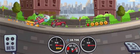 当你第一次玩这个游戏,因为刚进入游戏,没什么钱去升级物品,这时候不要一味的去踩油门,这样很容易翻车,而是要让自己的车保持在3的速度,这样你可以在属性游戏操作的同时,慢慢的积累金币,如果只想着往前冲,只会得不偿失。