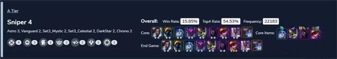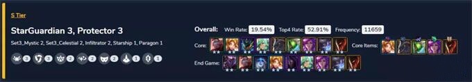 面对这条“妖龙”想必大家都不会感到陌生,自从10.14版本末期异军突起以来,它以一种非常高贵的姿态统治了游戏环境,再次向玩家们验证了那句话:贵的东西什么都好,唯一的缺点就是贵。最关键的是,这套阵容在没有圣盾转职的情况下,还能灵活切换成圣盾狙,而且整体强度同样不差。但需要注意的是,这套阵容的难点不在于运营而在于运气,所以脸黑的小伙伴一定要慎重选择。