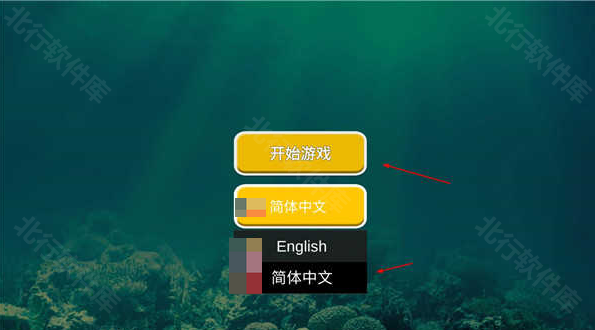 1、启动游戏,点击屏幕中央选语言,然后点击开始游戏;