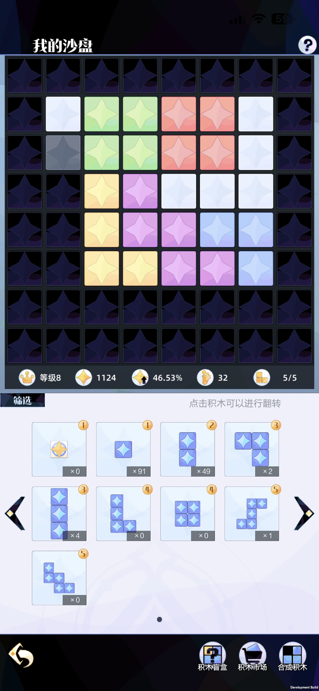 我们只能获取1-3格的积木,格数多的积木需要通过合成来获取。大家合成积木时最好使用相同数量的积木进行合成,差距太大可能会没有变化的。