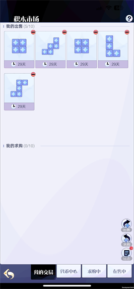 当然如果我们在拼图的过程中,恰好需要一块特定形状的积木,我们也可以通过交易市场,来与好友或者公会里的伙伴进行交易,当然需要注意的一点就是,你需要用一块相同格数的积木兑换一个兑换券,才可以进行交易。