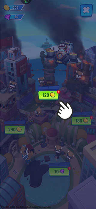 2、经营养成:使用金币,逐一驱赶被浣熊占据的城市建造,解锁下一章主题。