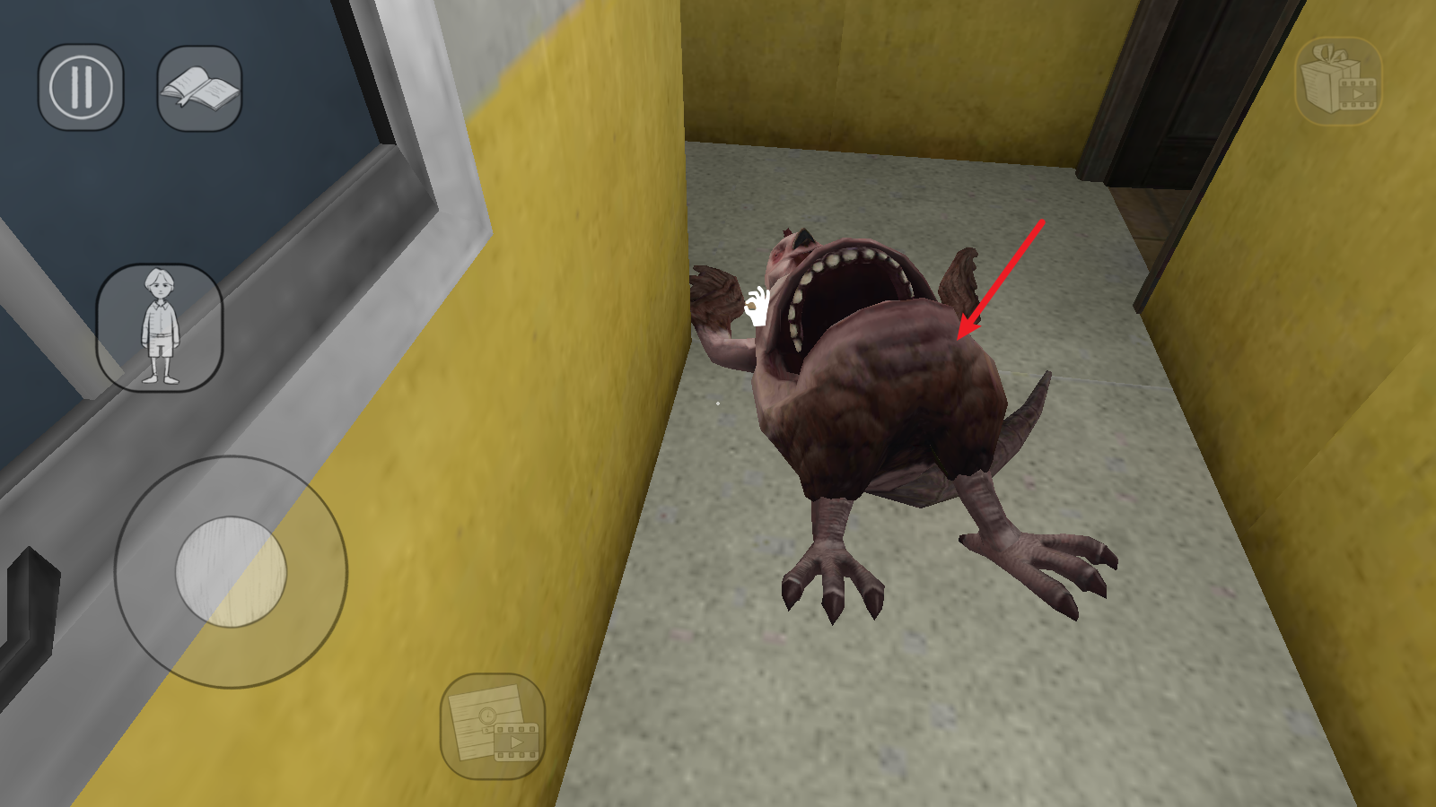 8、藏身地:游戏中可以藏身的地方有大衣柜,大衣柜打开后走到衣柜里然后关上门就可以了。打开的矮柜子,当你的白点指到他敞开的口时屏幕的右上方会有一个图标点击进入后就可以钻进柜子了,这个柜子在二楼。
