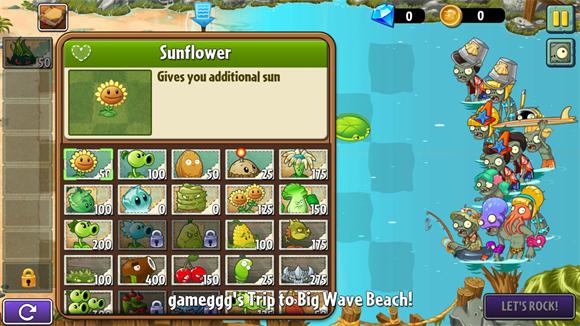 3、进入关卡后可以选择不同的植物来进行闯关,选好后点击右下角的按钮开始闯关。