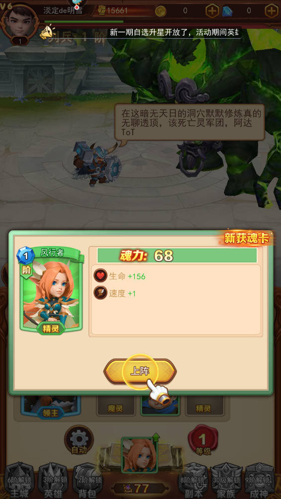 轻松收集上百张卡,放置战斗自由切屏,摆脱束缚;无损换将,养错英雄直接重置返还升阶材料,实现零损耗佛系养成