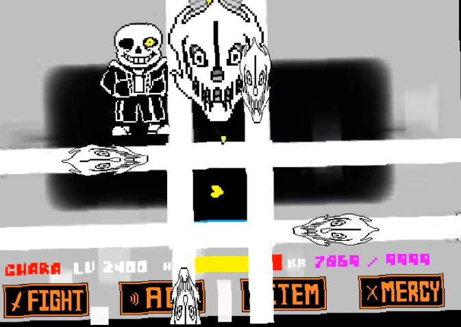 作为传说之下的一个厨力向作品,对原作的sans审判战进行了一定的二创,