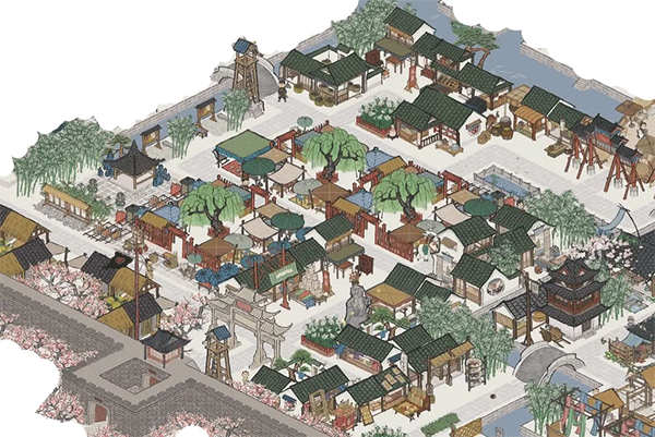 结合江南水乡特点,在不同城市打造不同风格,解锁专属建筑。