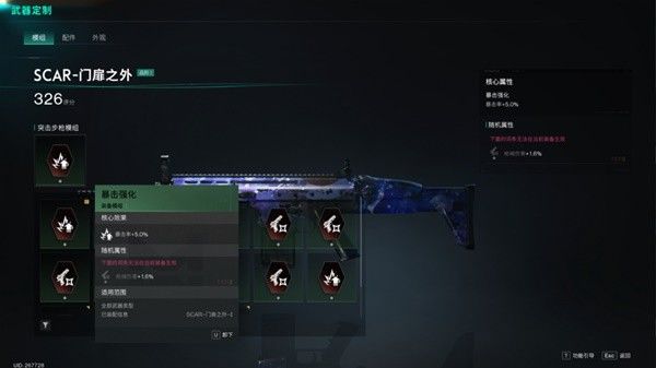武器定制:在武器或装备上加装模组与配件,强化武器装备的作战属性。