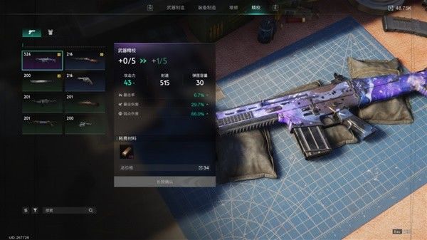 装备精校:使用材料对武器装备精校,提升作战能力。