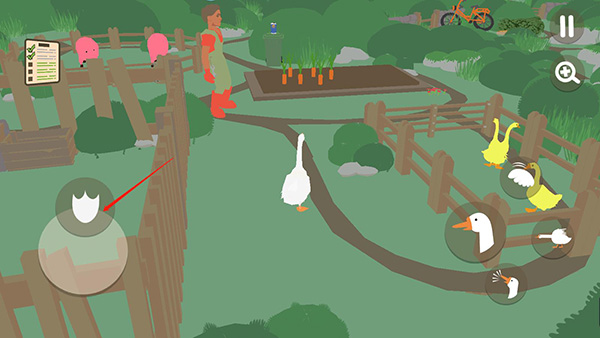 5、右手的这些按键可以控制大鹅飞起来,偷东西等等,然后和人类斗智斗勇吧!