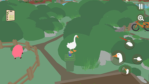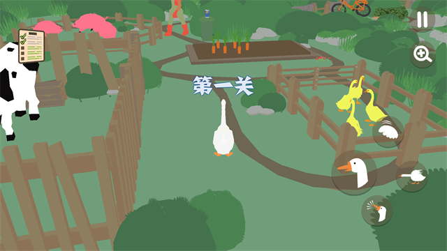 大鹅模拟器这款充满趣味的模拟休闲游戏,以俏皮的大白鹅为主角,带给玩家一场轻松愉快且充满恶作剧的冒险。在游戏中,玩家将化身为一只聪明机智的大白鹅,潜入人类的住宅和花园,展开一系列淘气的冒险。你的目标是通过制造混乱和骚动来挑战人类的日常生活。游戏的魅力在于其独特的玩法和幽默感,玩家可以通过各种创意十足的手段来捣乱——偷走园丁的钥匙、藏匿工具、用洒水器给毫无防备的人类制造惊喜,甚至偷偷享用各种美食。而所有这些恶作剧背后,玩家还需要时刻保持警觉,巧妙地避开追捕,确保自己不被抓住。