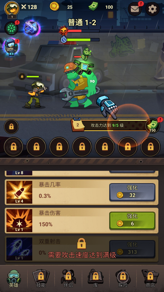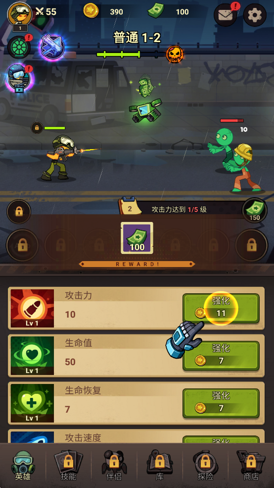 3.不断强化火柴人的各项属性,提升战力,才能在僵尸狂潮中战胜更多丧尸怪物,艰难求生!