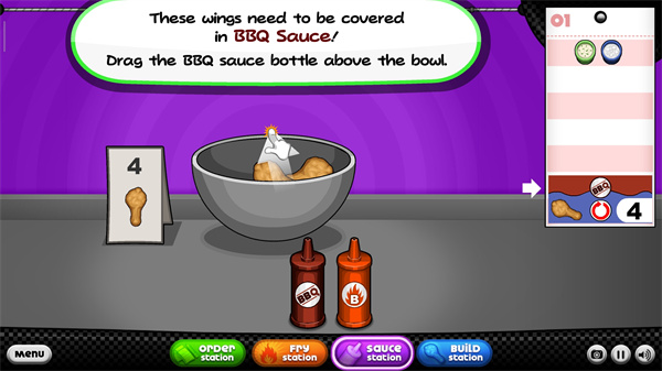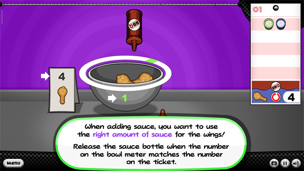 1、玩家需要根据客人的要求制作最美味的鸡翅。